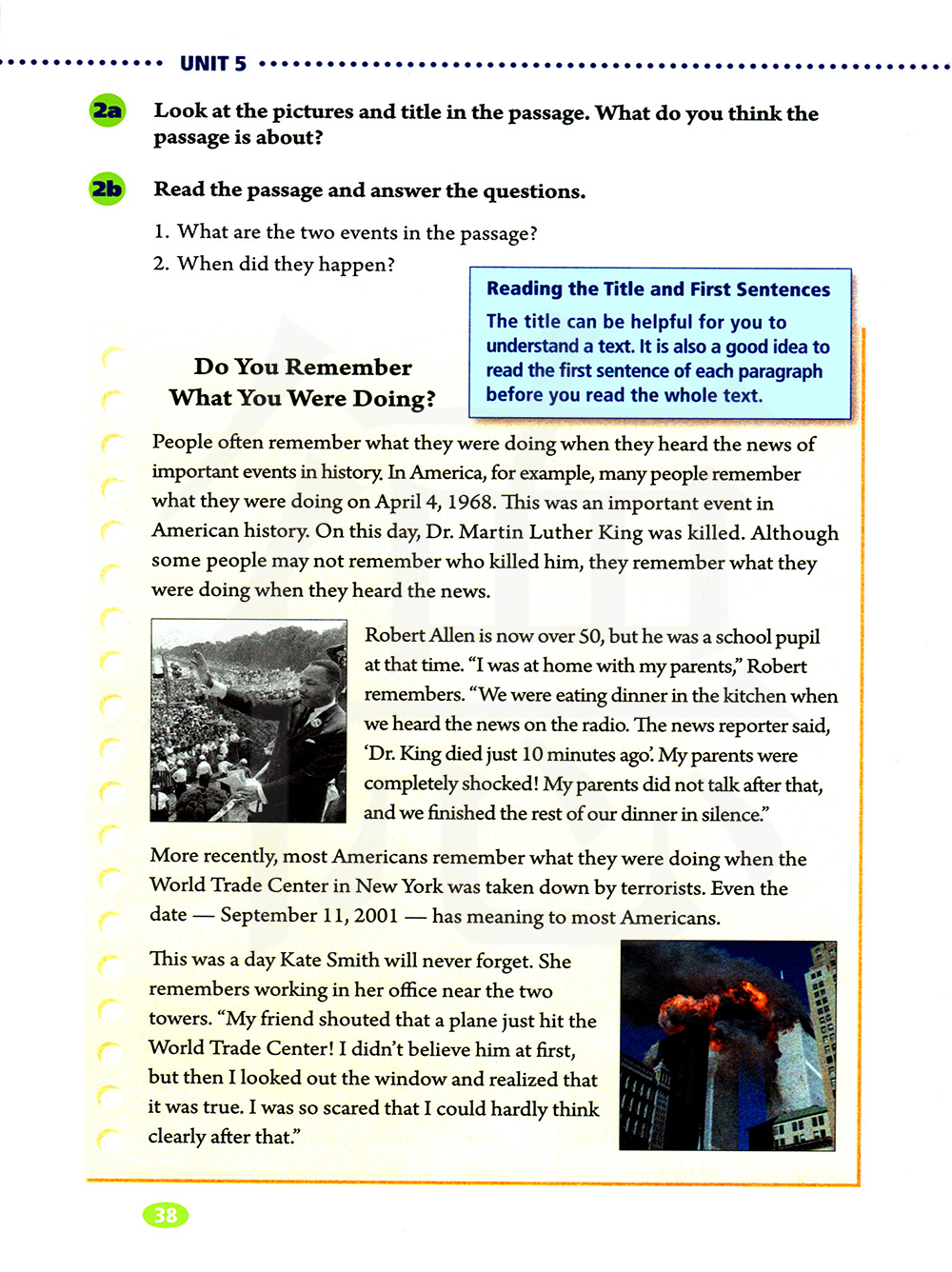 阅读标题和每段的第一句话 标题可以帮助你更好的理解课文。这还是一个好主意:阅读整篇文章前先读每段的第一句话