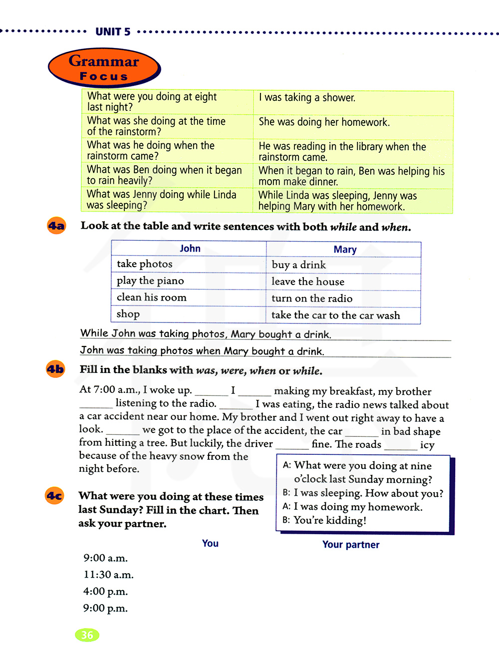 昨晚八点时,你在做什么? 我在洗澡。 暴风雨来时,她正在做什么? 她在做她的家庭作业