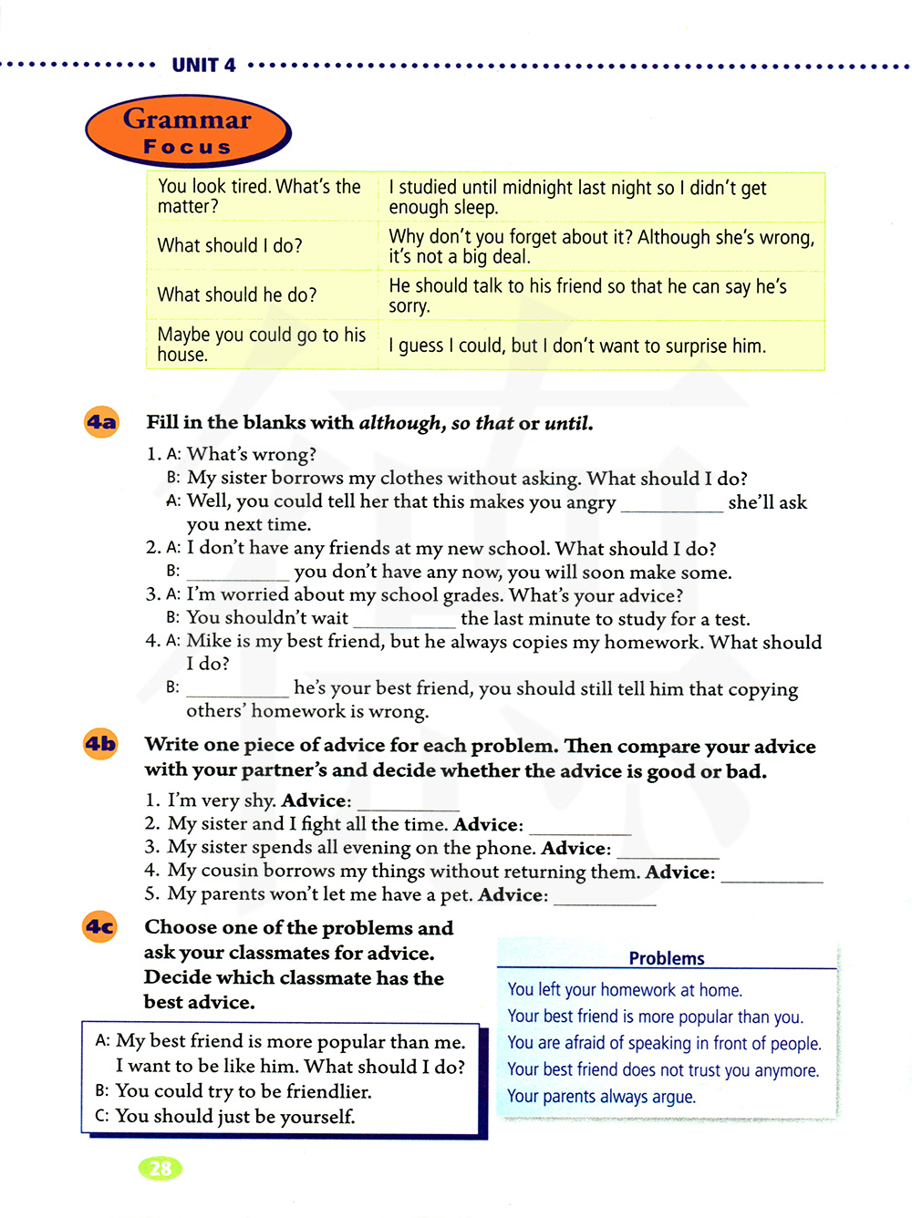 为每个问题写一条建议,然后和你的同伴对比一下,看看建议是好的还是不好的。