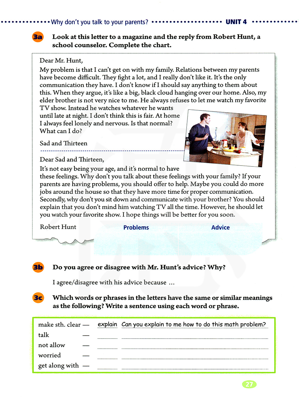 看一看这份写给杂志社的信和学校顾问罗伯特的回信,完成表格。