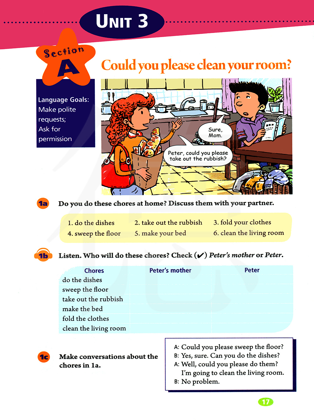 <p class="p" style="margin: 0pt; text-indent: 0pt; padding: 0pt;"> <!--[if !supportLists]--><span style="font-family: 微软雅黑; letter-spacing: 0pt; font-size: 12pt;">1、</span><!--[endif]--><span style="font-family: 微软雅黑; letter-spacing: 0pt; font-size: 12pt;">Peter ,could you please take out the trash? 彼得,你能把垃圾倒了吗?</span><br /> <span style="font-family: 微软雅黑; letter-spacing: 0pt; font-size: 12pt;">&nbsp; &nbsp; &nbsp;</span><span style="font-family: 微软雅黑; letter-spacing: 0pt; font-size: 12pt;">Could you please do sth ?请你(做)......好吗? </span><span style="font-family: 微软雅黑; letter-spacing: 0pt; font-size: 12pt;"><o:p></o:p></span></p> <p class="p" style="margin-top: 0pt; margin-right: 0pt; margin-bottom: 0pt; padding: 0pt;"> <span style="font-family: 微软雅黑; letter-spacing: 0pt; font-size: 12pt;">&nbsp; &nbsp; &nbsp;用于提出请求,希望得到对方的肯定回答,说话的语气比较客气委婉。</span><br /> <span style="font-family: 微软雅黑; letter-spacing: 0pt; font-size: 12pt;">&nbsp; &nbsp; &nbsp;Could 不是can的过去式,是委婉、礼貌的说法。回答用can.</span><br /> <span style="font-family: 微软雅黑; letter-spacing: 0pt; font-size: 12pt;"><font face="微软雅黑">【常用答语】肯定回答:</font>Sure./ Of course./ Certainly./No problem.&nbsp;&nbsp; </span><span style="font-family: 微软雅黑; letter-spacing: 0pt; font-size: 12pt;"><o:p></o:p></span></p> <p class="p" style="margin-top: 0pt; margin-right: 0pt; margin-bottom: 0pt; text-indent: 72pt; padding: 0pt;"> <span style="font-family: 微软雅黑; letter-spacing: 0pt; font-size: 12pt;"><font face="微软雅黑">否定回答:</font> Sorry , I can&rsquo;t</span><br /> <span style="font-family: 微软雅黑; letter-spacing: 0pt; font-size: 12pt;">2、take out 取出(v+ adv)&nbsp;</span><br /> <span style="font-family: 微软雅黑; letter-spacing: 0pt; font-size: 12pt;"><font face="微软雅黑">【注】</font>: 跟代词做宾语,代词放中间;跟名词做宾语,可放在中间,也可放在后边</span><br /> <span style="font-family: 微软雅黑; letter-spacing: 0pt; font-size: 12pt;">&nbsp; &nbsp; His teeth hurt badly. The dentist take them out .</span><br /> <span style="font-family: 微软雅黑; letter-spacing: 0pt; font-size: 12pt;"><font face="微软雅黑">【短语】</font>take out the trash 倒垃圾&nbsp; </span><span style="font-family: 微软雅黑; letter-spacing: 0pt; font-size: 12pt;">&nbsp;</span><span style="font-family: 微软雅黑; letter-spacing: 0pt; font-size: 12pt;"><o:p></o:p></span></p> <p class="p" style="margin-top: 0pt; margin-right: 0pt; margin-bottom: 0pt; text-indent: 48pt; padding: 0pt;"> <span style="font-family: 微软雅黑; letter-spacing: 0pt; font-size: 12pt;">take a walk 散步&nbsp; </span><span style="font-family: 微软雅黑; letter-spacing: 0pt; font-size: 12pt;"><o:p></o:p></span></p> <p class="p" style="margin: 0pt 0pt 0pt 47.9pt; text-indent: 0pt; padding: 0pt;"> <span style="font-family: 微软雅黑; letter-spacing: 0pt; font-size: 12pt;">take away 拿走,取走</span><br /> <span style="font-family: 微软雅黑; letter-spacing: 0pt; font-size: 12pt;">take back 收回&nbsp;&nbsp;&nbsp;&nbsp; </span><span style="font-family: 微软雅黑; letter-spacing: 0pt; font-size: 12pt;"><o:p></o:p></span></p> <p class="p" style="margin-top: 0pt; margin-right: 0pt; margin-bottom: 0pt; text-indent: 48pt; padding: 0pt;"> <span style="font-family: 微软雅黑; letter-spacing: 0pt; font-size: 12pt;">take place 发生&nbsp;&nbsp; </span><span style="font-family: 微软雅黑; letter-spacing: 0pt; font-size: 12pt;"><o:p></o:p></span></p> <p class="p" style="margin-top: 0pt; margin-right: 0pt; margin-bottom: 0pt; text-indent: 48pt; padding: 0pt;"> <span style="font-family: 微软雅黑; letter-spacing: 0pt; font-size: 12pt;">take off&nbsp;&nbsp; 脱下; 起飞</span><br /> <span style="font-family: 微软雅黑; letter-spacing: 0pt; font-size: 12pt;">3</span><span style="font-family: 微软雅黑; letter-spacing: 0pt; font-size: 12pt;">、</span><span style="font-family: 微软雅黑; letter-spacing: 0pt; font-size: 12pt;">Can you do the dishes.?那你可以洗盘子吗?</span><br /> <span style="font-family: 微软雅黑; letter-spacing: 0pt; font-size: 12pt;">&nbsp; &nbsp; &nbsp;do the dishes 洗碗</span><br /> <span style="font-family: 微软雅黑; letter-spacing: 0pt; font-size: 12pt;">&nbsp;【结构1】do the +名词:&nbsp;&nbsp;&nbsp; do the dishes/ laundry 洗餐具/衣服</span><br /> <span style="font-family: 微软雅黑; letter-spacing: 0pt; font-size: 12pt;">&nbsp;【结构2】do the +动词-ing&nbsp;&nbsp; do the cleaning 打扫卫生</span><br /> <span style="font-family: 微软雅黑; letter-spacing: 0pt; font-size: 12pt;">&nbsp;【结构3】do one&rsquo;s + 名词&nbsp;&nbsp; do one&rsquo;s housework/ homework 做家务/家庭作业</span><br /> <span style="font-family: 微软雅黑; letter-spacing: 0pt; font-size: 12pt;">&nbsp;【结构4】do some +动词-ing&nbsp; do some reading/ shopping&nbsp; 读写书/购物</span><br /> <span style="font-family: 微软雅黑; letter-spacing: 0pt; font-size: 12pt;">4、</span><span style="font-family: 微软雅黑; letter-spacing: 0pt; font-size: 12pt;">Could I at least finish watching this show? 至少让我看完这个节目可以吗?</span><br /> <span style="font-family: 微软雅黑; letter-spacing: 0pt; font-size: 12pt;">&nbsp; 1)Could I do a sth? 我可以做......吗?</span><br /> <span style="font-family: 微软雅黑; letter-spacing: 0pt; font-size: 12pt;"><font face="微软雅黑">&nbsp; &nbsp; &nbsp; &nbsp; 用于表达请求,语气比较委婉。</font> Could I go out with my classmate this weekend?</span><br /> <span style="font-family: 微软雅黑; letter-spacing: 0pt; font-size: 12pt;">&nbsp; 2)at least 至少,多指数量或程度上的最低限度。(反) at most 至少,不超过</span><br /> <span style=