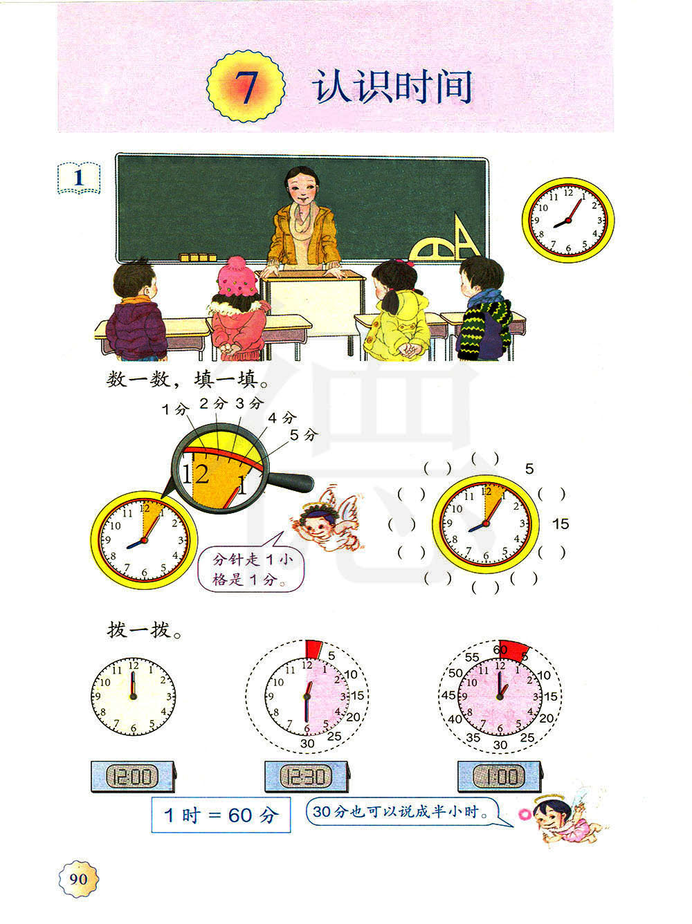 钟表表面有12个大格,每个大格子有5小格,一共有60小格