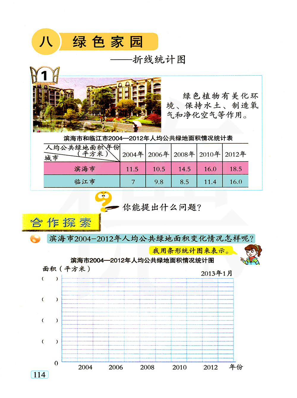 1、借助实例,认识折线统计图,了解折线统计图的作用,会用折线统计图表示数据。