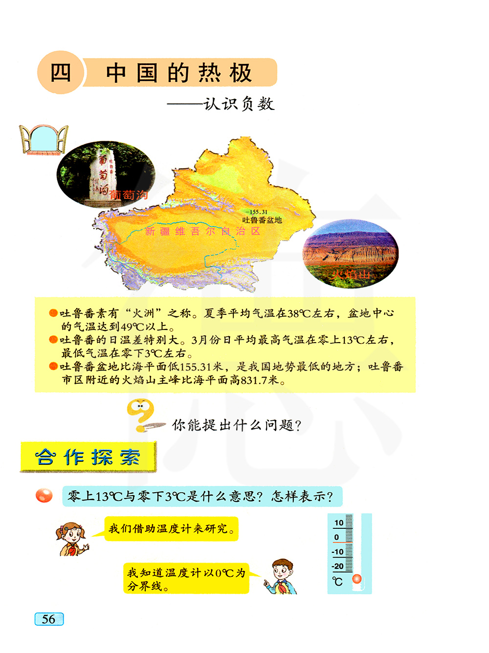 3.正、负数零上13℃, 用“+13℃”表示零下3℃, 用“-3℃”表示比海平面低155米,用“-155米”具有相反意义的量,可以用正、负数表示。