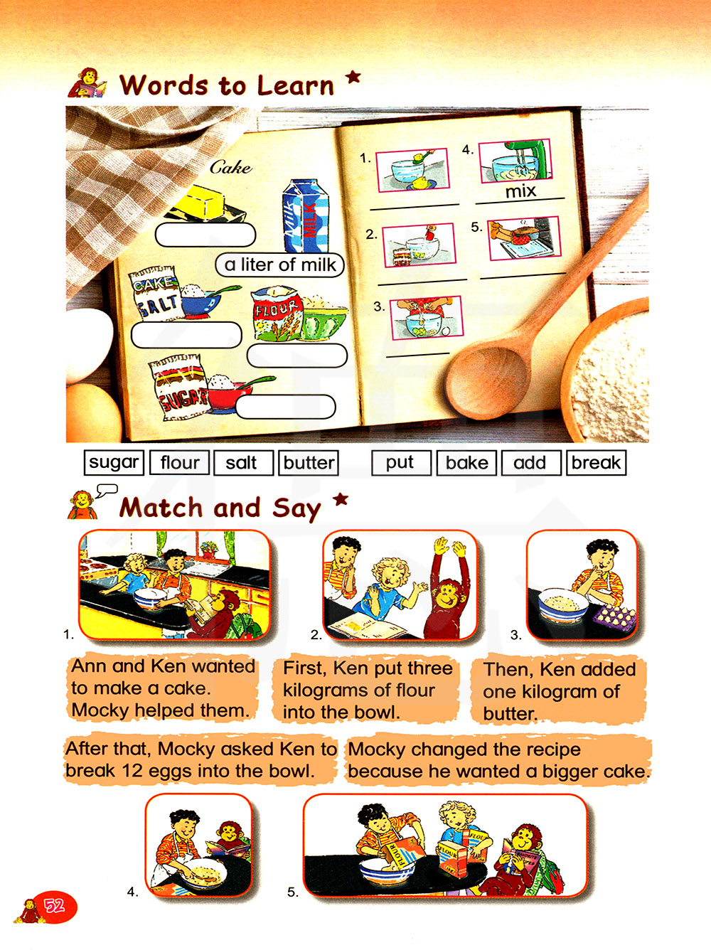 安和肯想要制作一个蛋糕。莫基帮助了他们