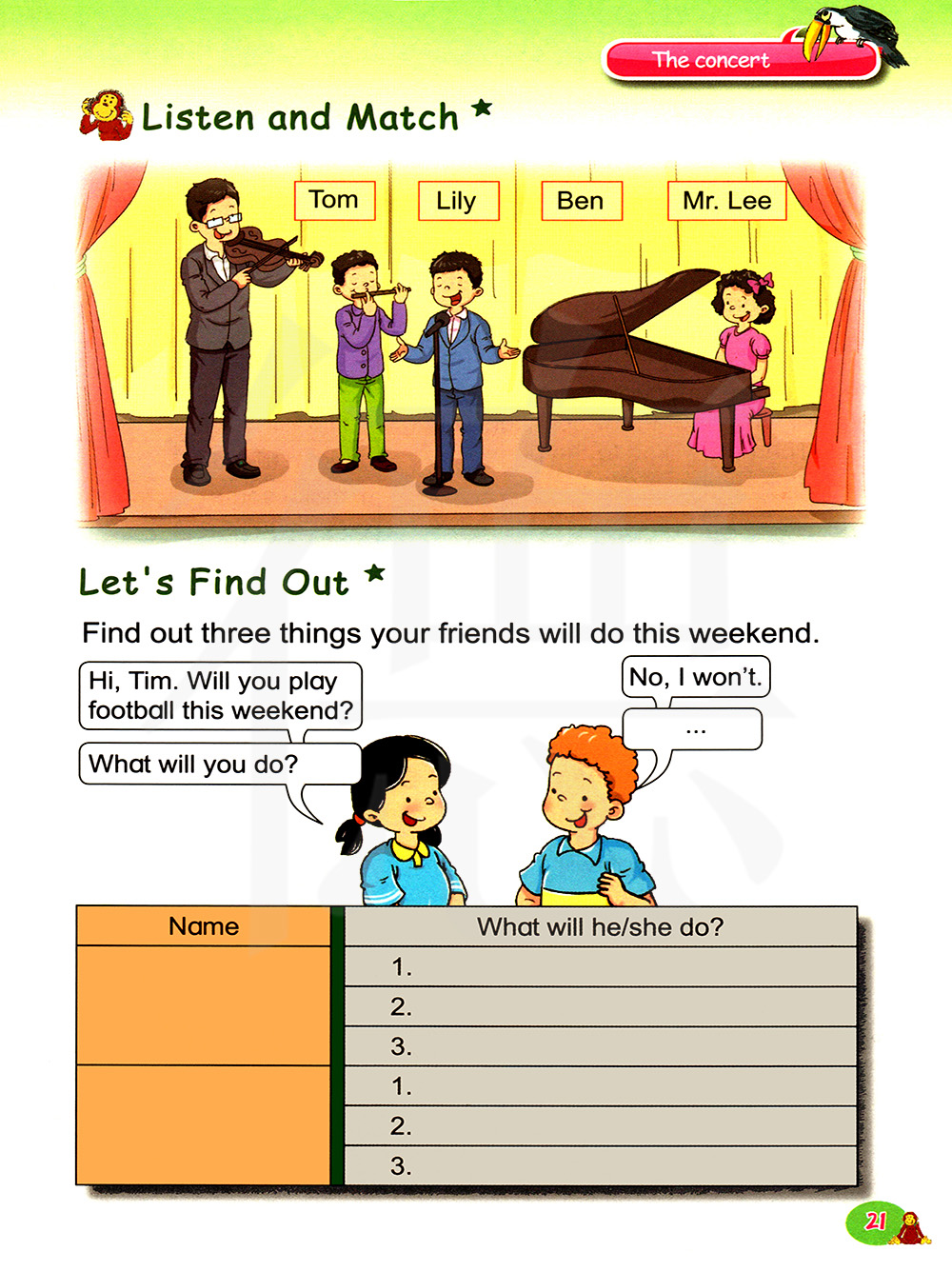 找出三件你的朋友这周末会做的事