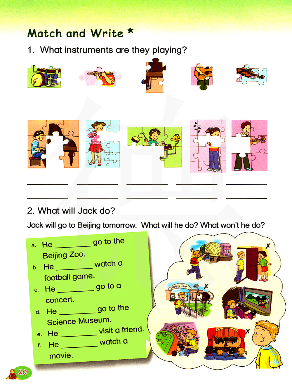 杰克明天将去北京,他会做什么? 他不会做什么?