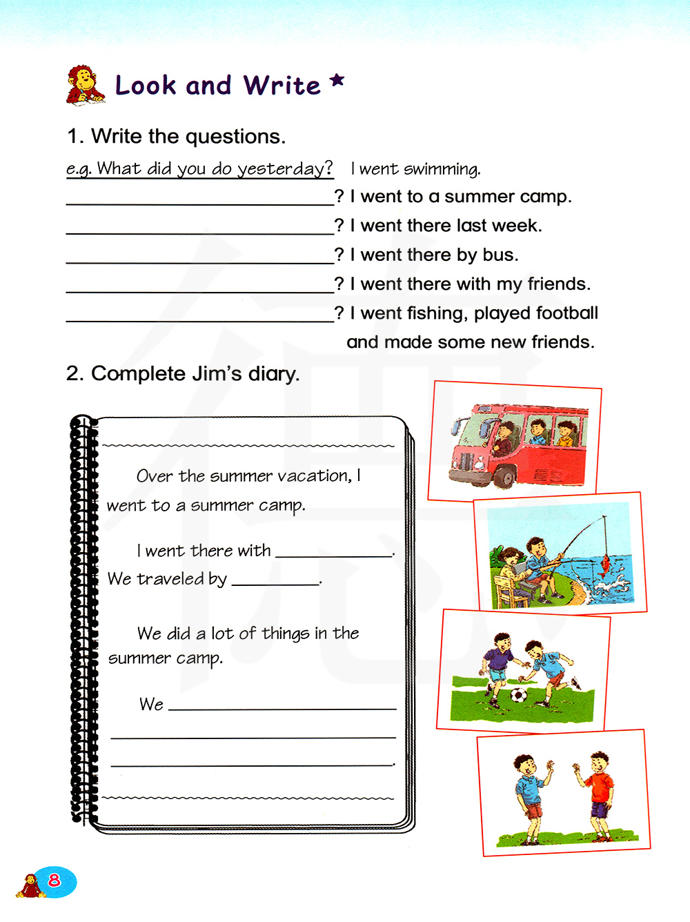 例:你昨天做了什么? 我去游泳了。 我去了夏令营