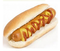 n.<口>热狗(一种中间夹有熏红肠并配有芥菜,作料等的面包);