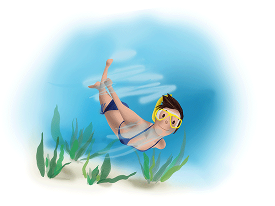 例句:With a snorkel, however, a diver can stay under water for quite a long time.