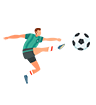 这个足球运动员假装向前跑去,接着突然转变方向,把球带往另一边。