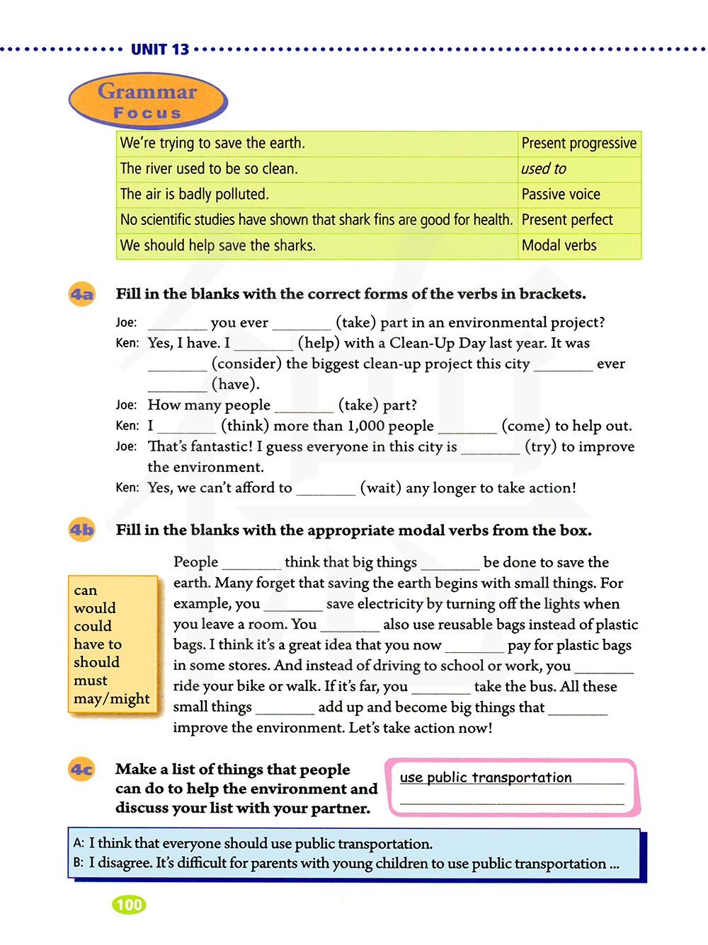 它被认为是小镇最好看的河。被动语态 空气已经变得非常污浊。 现在完成时 我们应该帮助拯救鲨鱼。 情态动词