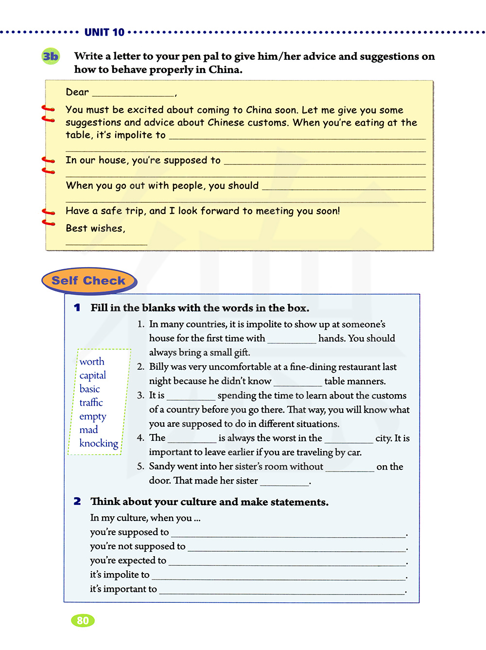 给你的笔友写一封信,就如何在中国保持恰当的行为举止给他/她一些建议