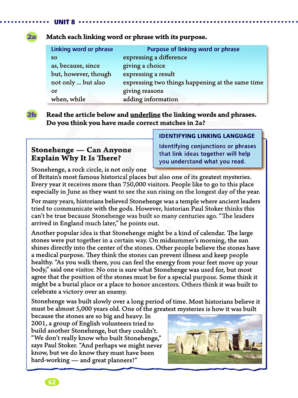 阅读下面的这篇文章在连词或连词词组下面划线,你认为你在2a中的搭配正确吗?