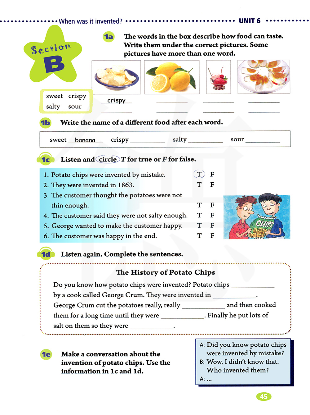 就炸土豆片的发明编一个对话,使用1c和1d的信息