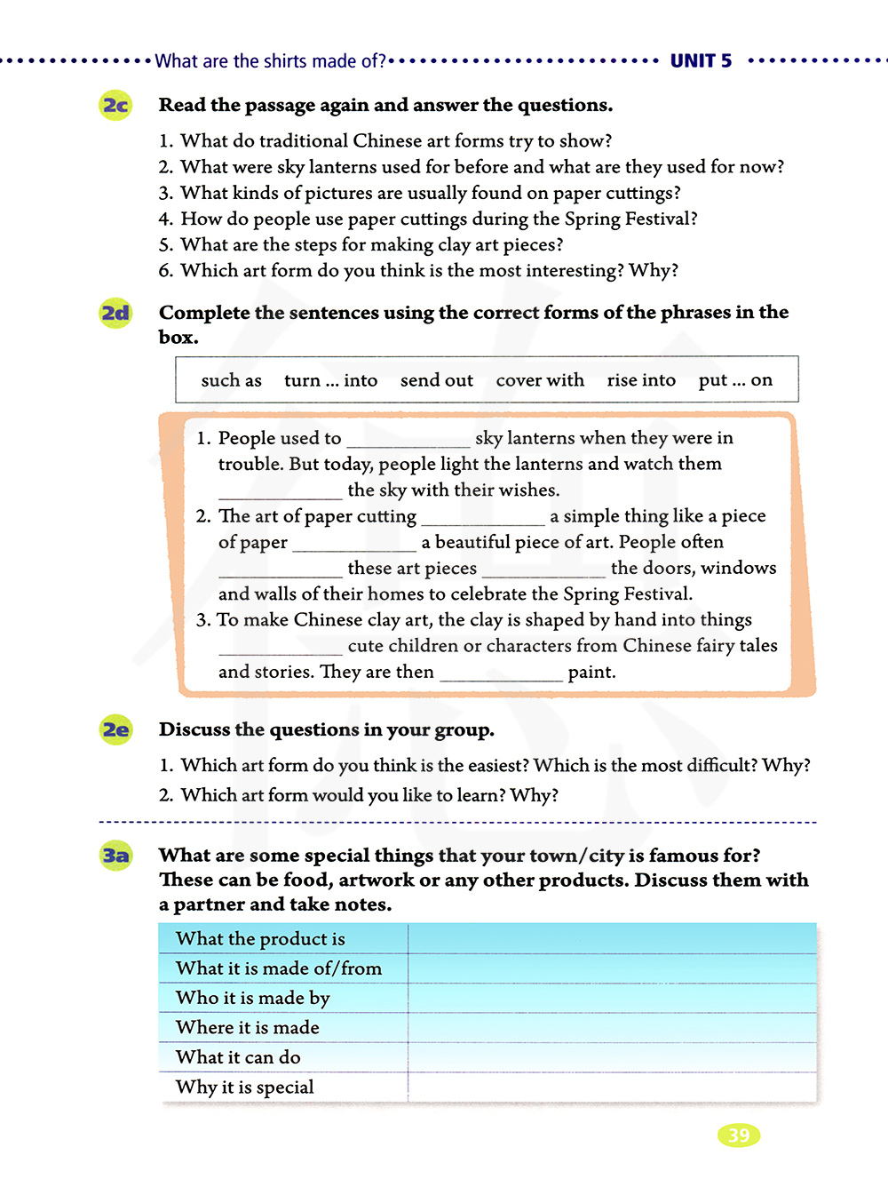 你的城镇/城市一些闻名的特殊事物是什么?这些可以是食物,艺术品或任何其他产品,和你的同伴讨论它们并做笔记。