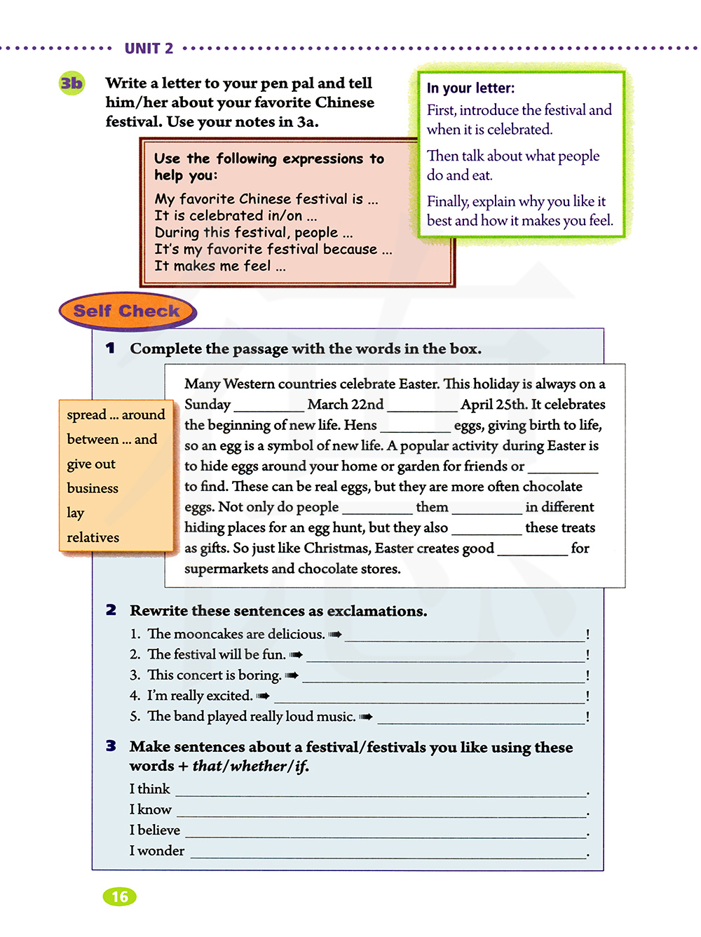 给你的笔友写一封信,告诉她/他你最喜欢的中国节日,使用你在3a中的笔记。