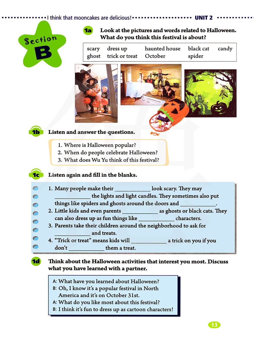 想一想使你最感兴趣的万圣节前夕活动,和一个同伴讨论你已经学到的