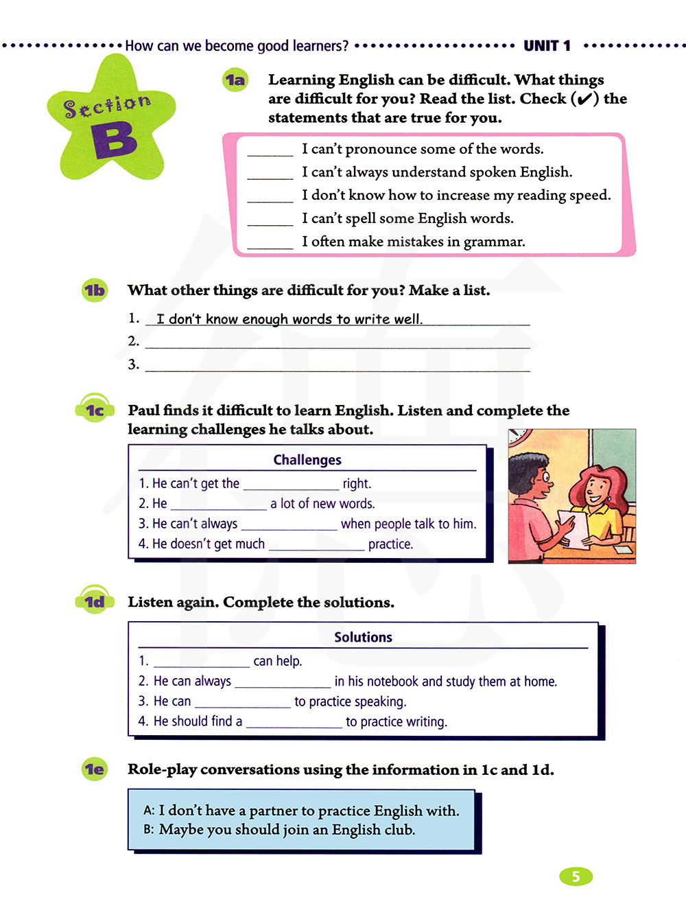 保罗发现学英语很难。听一听并完成他谈到的学习挑战。