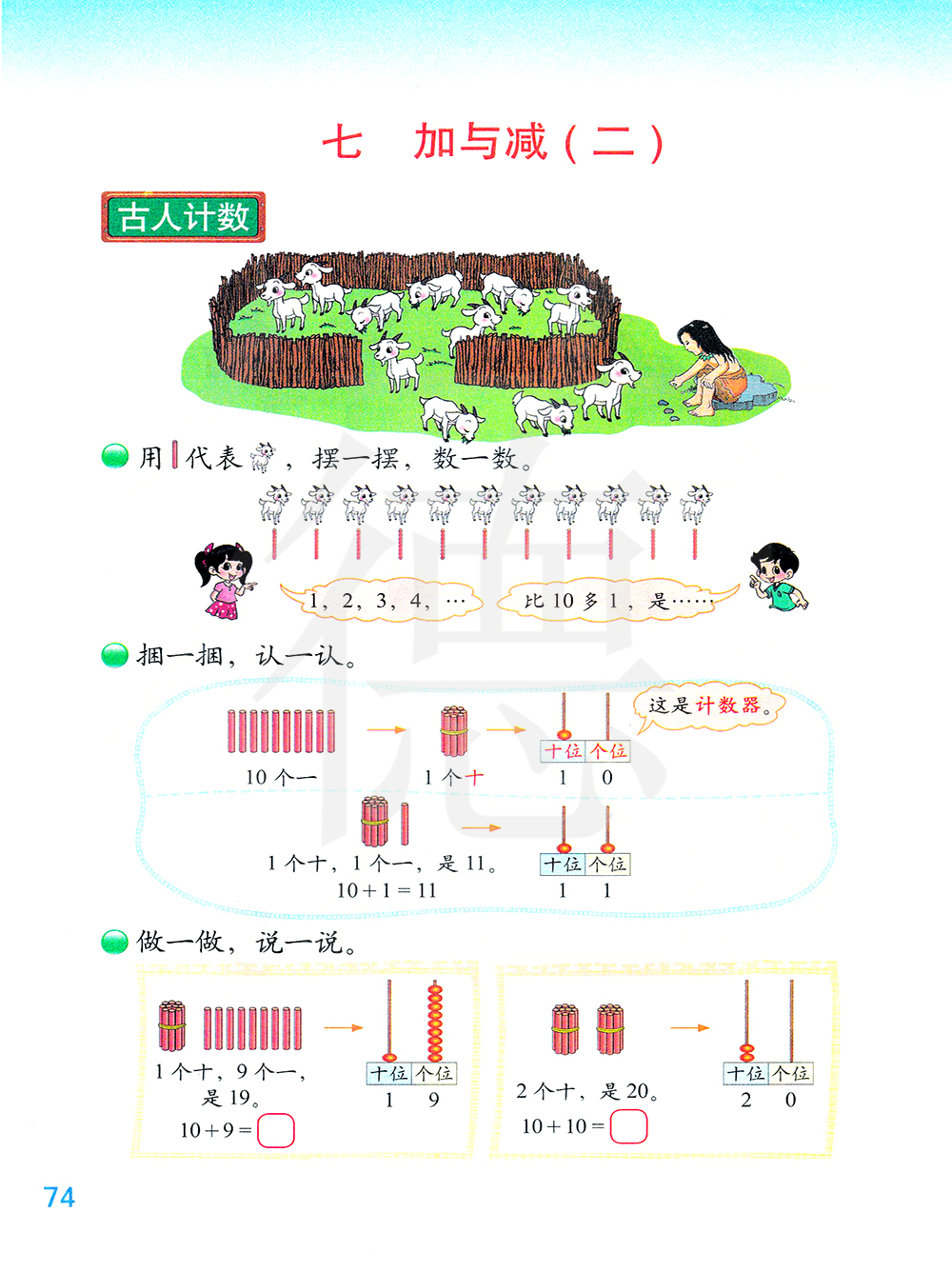 学会20以内不进位加法和不退位减法,及进位加法和退位减法,并体会计算方法的多样性,能解决与此相关的问题