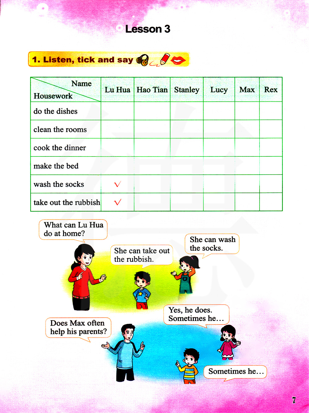 姓名、家务 陆华 昊天 斯坦利 露西 马克斯 雷克斯