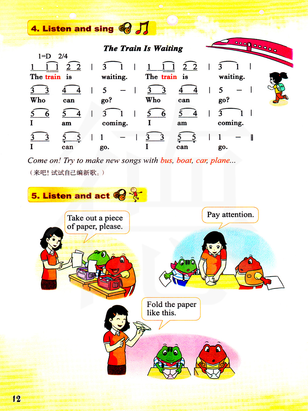 来吧!用bus,boat,car,plane.....试着编新歌。
