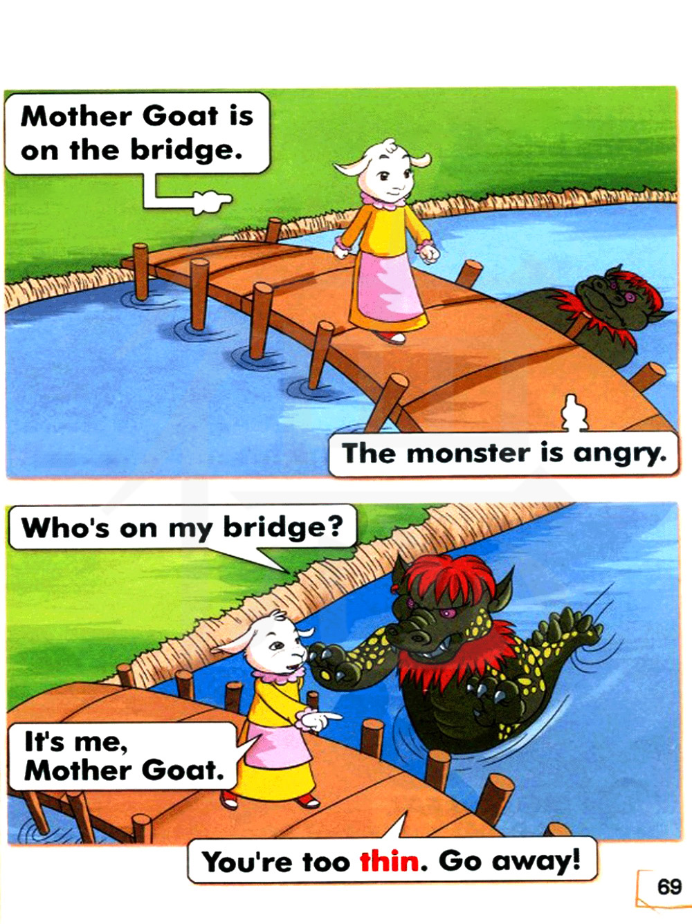 山羊妈妈走在桥上。