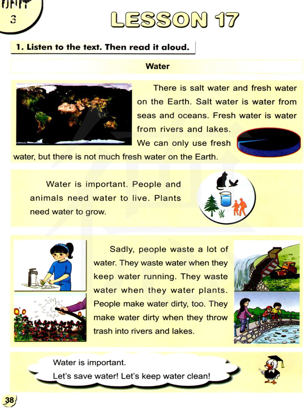 水是重要的,人们和动物需要水去生存。植物需要水去生长