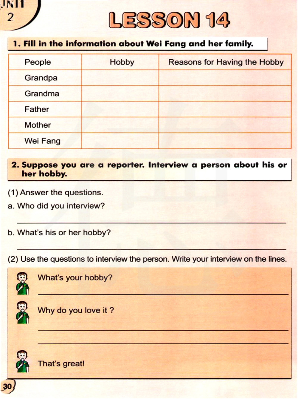 用这些问题去采访这个人,把你的采访写在横线上