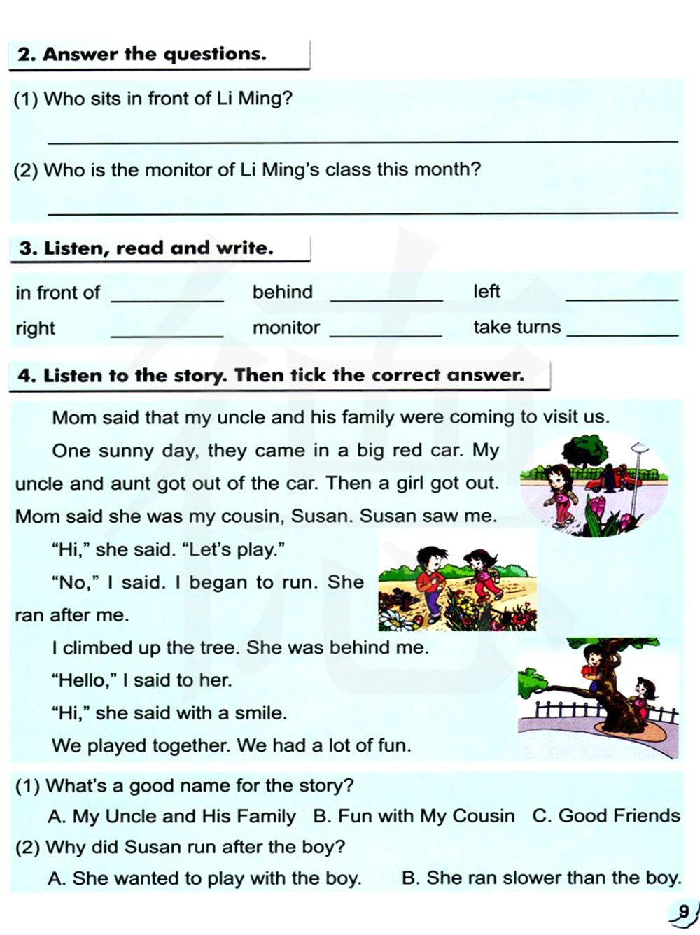 一个晴朗的日子里,他们坐着一辆红色的大汽车来了,我的叔叔婶婶下了车,然后一个女孩下车,我的妈妈告诉我,她是我的堂妹苏珊,苏珊看见了我