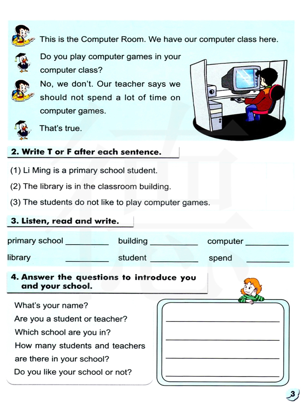 不,我们不玩,我们的老师说我们不应该花大量的时间在电脑游戏上。