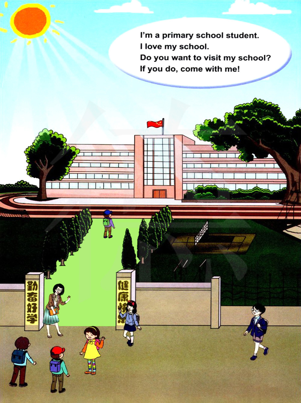 你想参观我的学校吗?如果你想的话,就跟我一起来吧