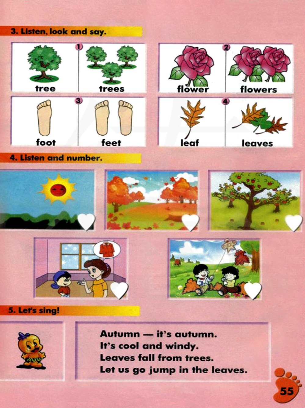 秋天——这是秋天。凉爽而有风。叶子从树上掉落。让我们在叶子上跳。