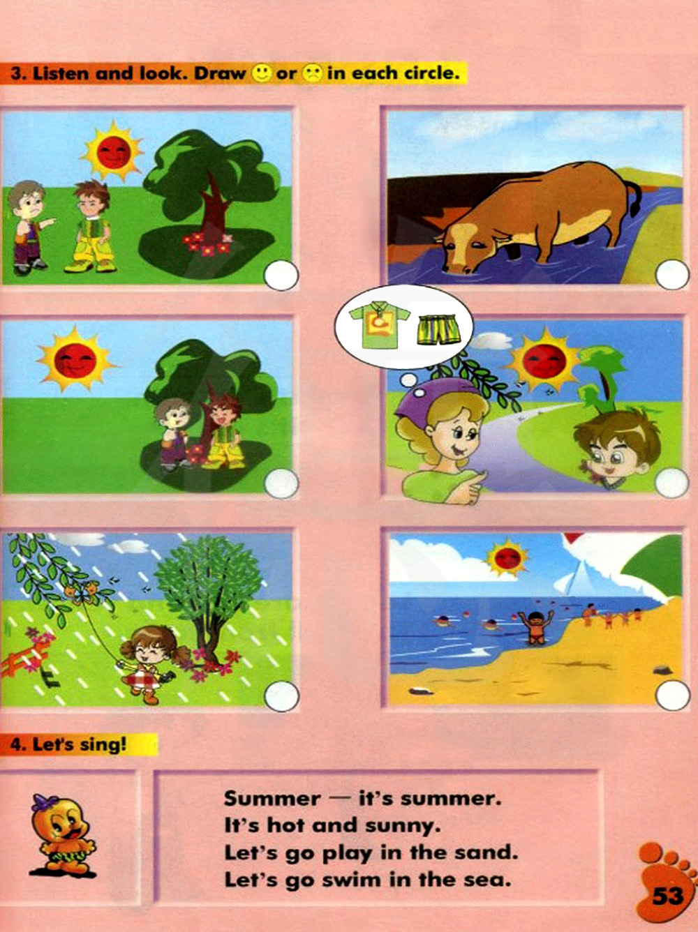 夏天——这是夏天。炎热而阳光灿烂。让我们在沙里玩耍。让我们在海里游泳。