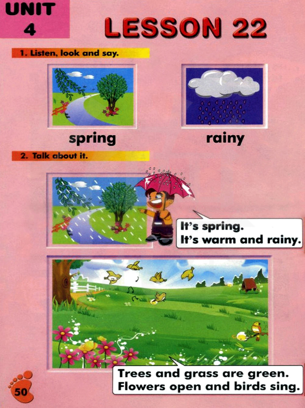 树木和草是绿色的。花儿盛开,鸟儿歌唱。