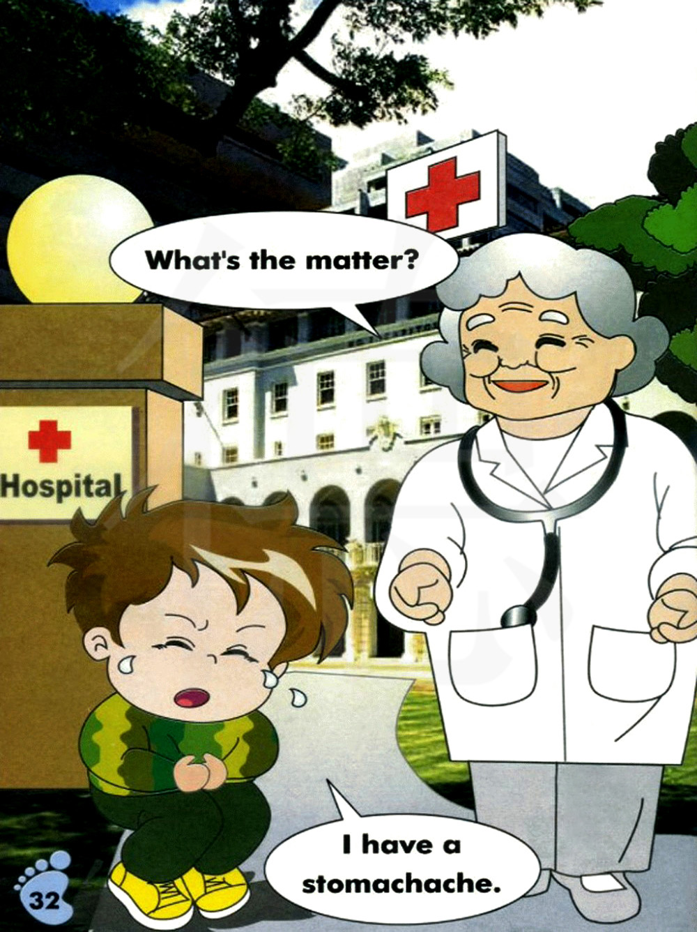 我肚子疼。