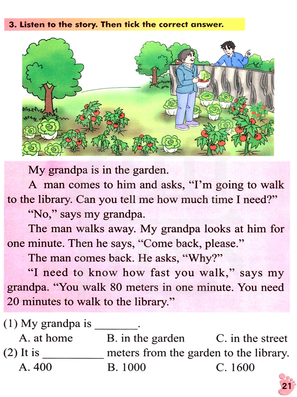 听故事,然后勾出正确的答案。