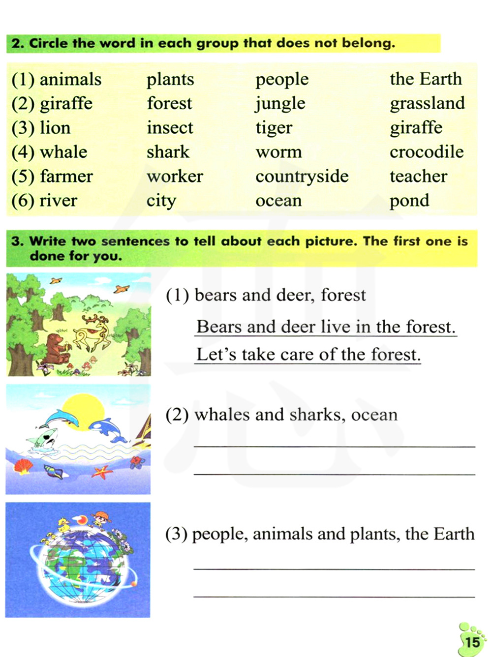 人,动物和植物,地球 人,动物和植物住在地球上。让我们爱护地球。