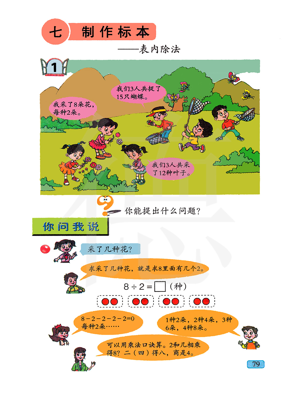 重点 1、学会用口诀求商的方法,逐步熟练地口算表内除法。