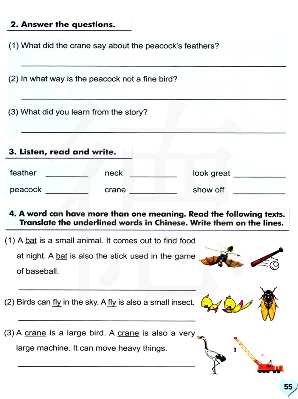 一个单词可以有不只一种含义。阅读以下课文,用中文翻译划横线的单词。把它们写在横线上。