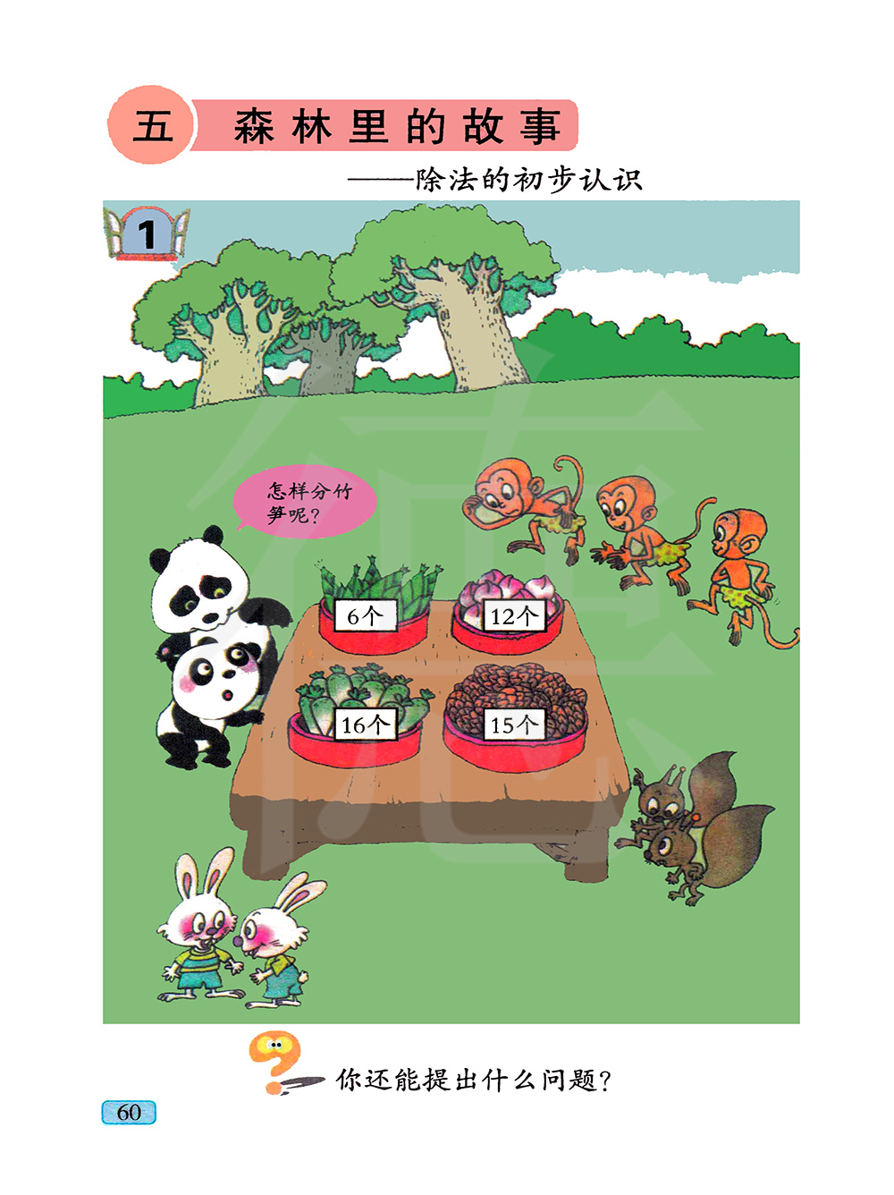 学习目标1.认识除法,认识除号,了解除法算式的写法和读法。