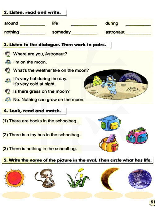 在椭圆里写出图片的名称。然后圈出有生命的东西。