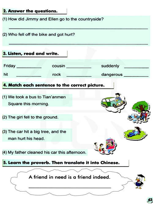 把每个句子与正确的图片搭配。