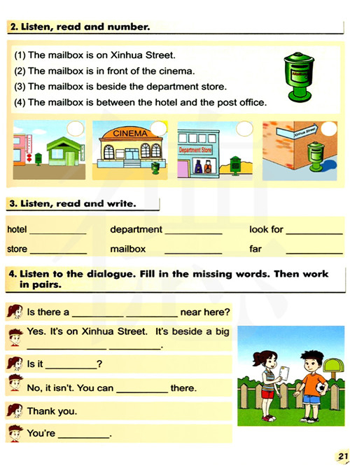 听对话。填写所缺的单词。然后两人一组练习。