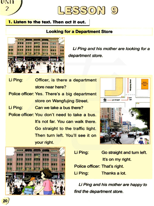 警察,这里附近有百货商场吗?是的。王府井大街上有一间大的百货商场。