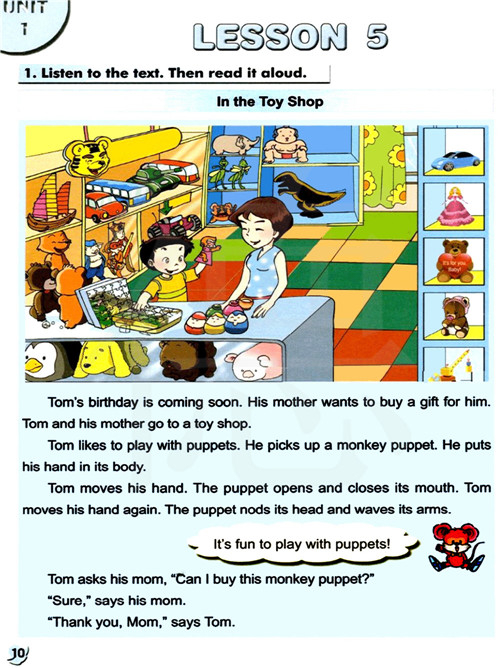 汤姆问他的妈妈,”我可以买这个猴子木偶吗?”