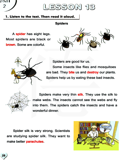 有些昆虫,像苍蝇和蚊子是有害的。它们叮我们,损害我们的植物,蜘蛛通过吃这些有害的昆虫帮助我们
