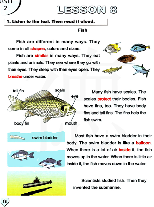 很多鱼都有鱼鳞,鱼鳞保护它们的身体,鱼也有鳍,它们有体鳍和尾鳍,鳍帮助鱼游泳