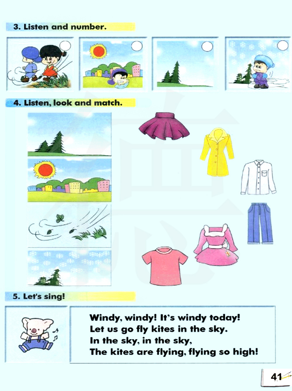 刮风了,刮风了,今天刮风了。让我们在空中放风筝。在空中,在空中,风筝在飞,飞得很高
