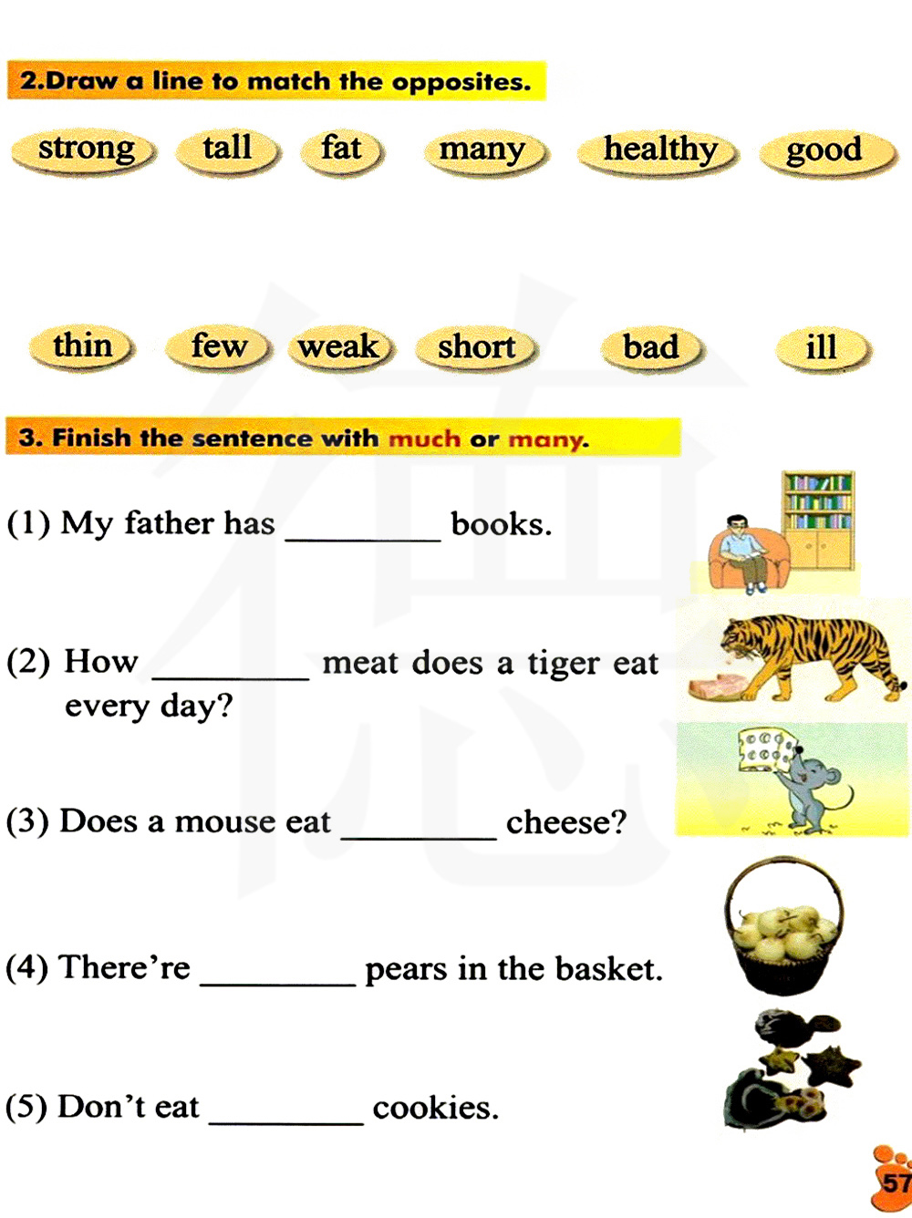 用much或者many来完成句子。